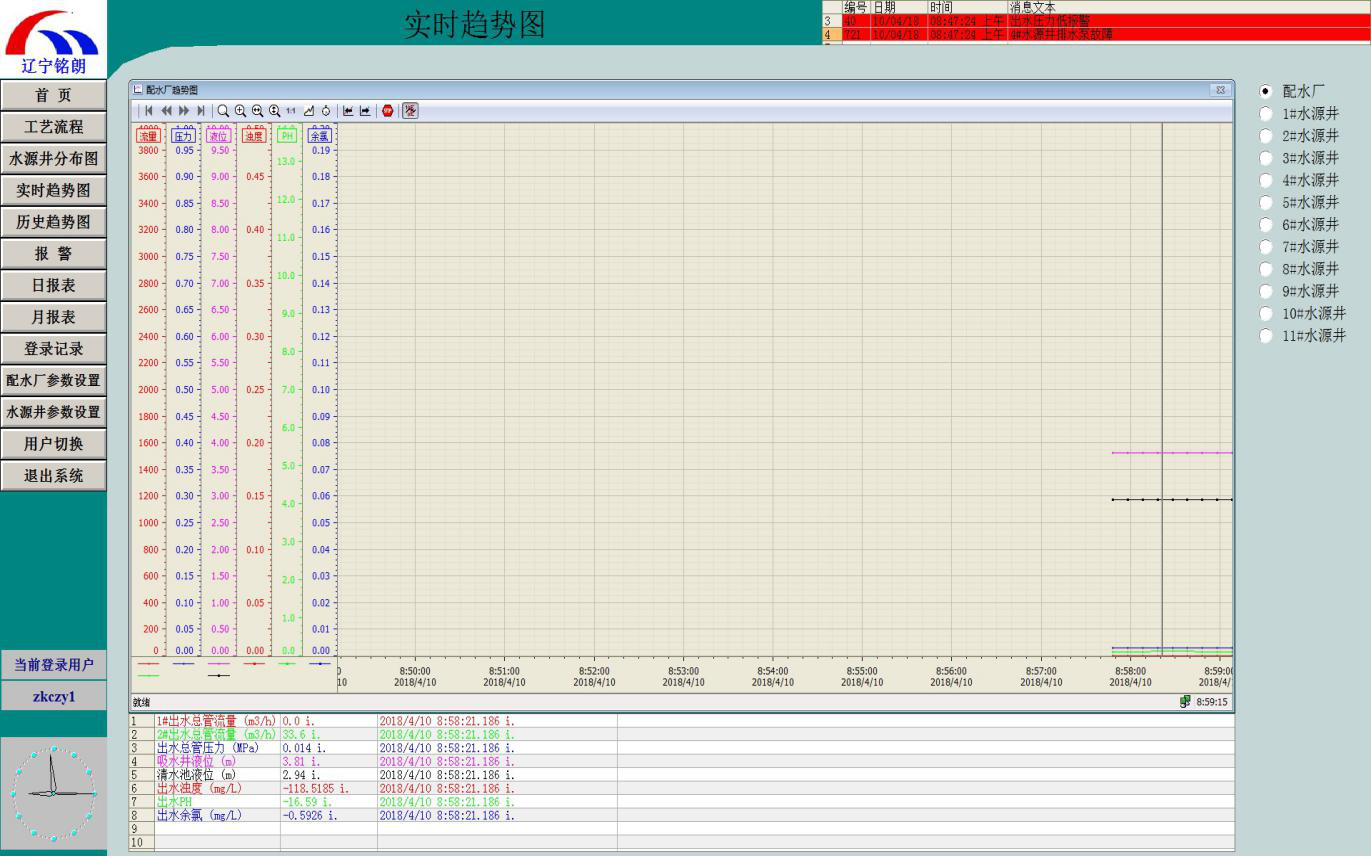 将所采集到的压力、流量、液位等参数,通过曲线的形式展示。了解当前参数的******小值及变化趋势,根据实际的需要可以自己选取想要显示的流量、压力曲线、曲线显示的类型、显示曲线的时间间隔、某一曲线段的放大、曲线段的打印、列表的隐含,为安全运行生产提供必要的曲线依据。