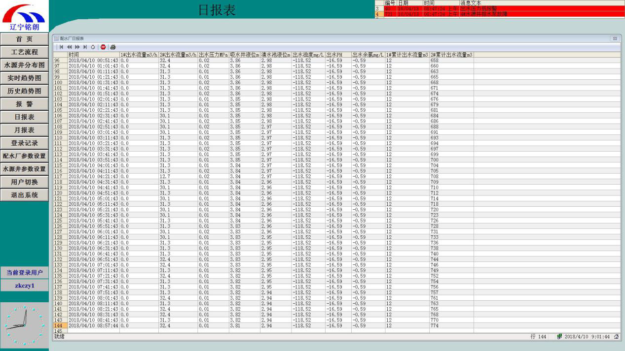 系统自动记录各种工艺运行数据,将所有数据归纳汇总形成报表,报表可定时打印或召唤打印,操作员也可通过菜单或按钮进入报表画面查看历史报表。