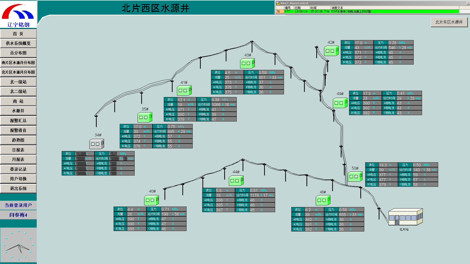 对水源井数据(泵电流、电压压力、流量、液位、设备工作状态等)进行24小时不间断显示功能。