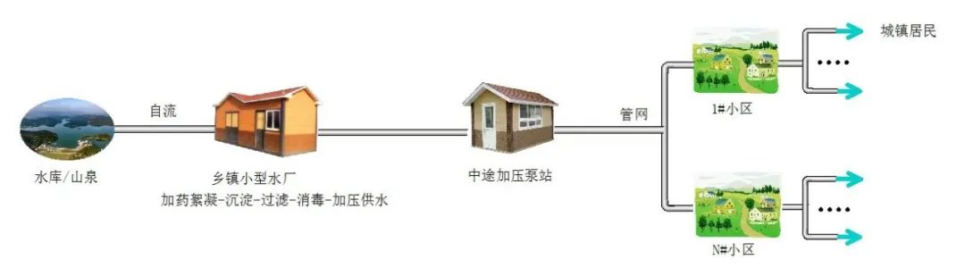 以县区为单位,统一规划、统筹建设、统一监管,本工程采用小型集中式供水工程体系,进一步提升供水保障率、水质达标率,建立良性运行机制,提高运行管理水平和监管能力,实现全民覆盖,城乡共享优质供水服务。