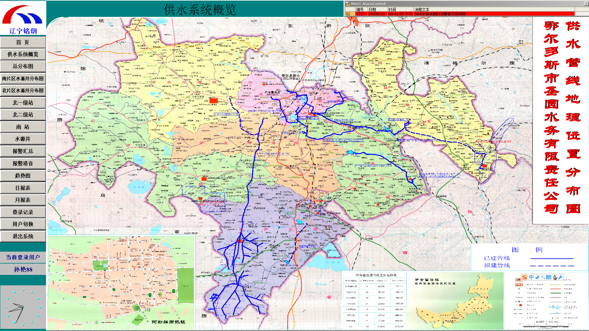 我司建设鄂尔多斯圣圆水务集中统一控制系统,融合供水的监测、采集和预警等,通过整合各种设备数据包括管网压力监测、流量监测、水质监测、水厂生产数据及视频监测等,结合GIS服务,形成供水一张图,提供调度人员日常工作需要的信息监视、业务处理、调度决策、深入挖掘相关分析、信息查询、汇总统计和数据分析等,为水务公司的供水监控管理提供数据支撑及数据预警,同时也为集团统一调度、优化调度提供平台。